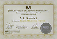 エリクソントレーニングコース修了 - JAAI エリクソン催眠マスタープラクティショナー認定コース修了